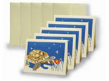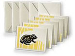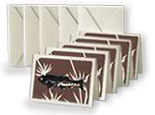 Embossed note cards 4 3/16" x 5 1/2". Hand embossed envelopes included. Eco-friendly paper & ink.